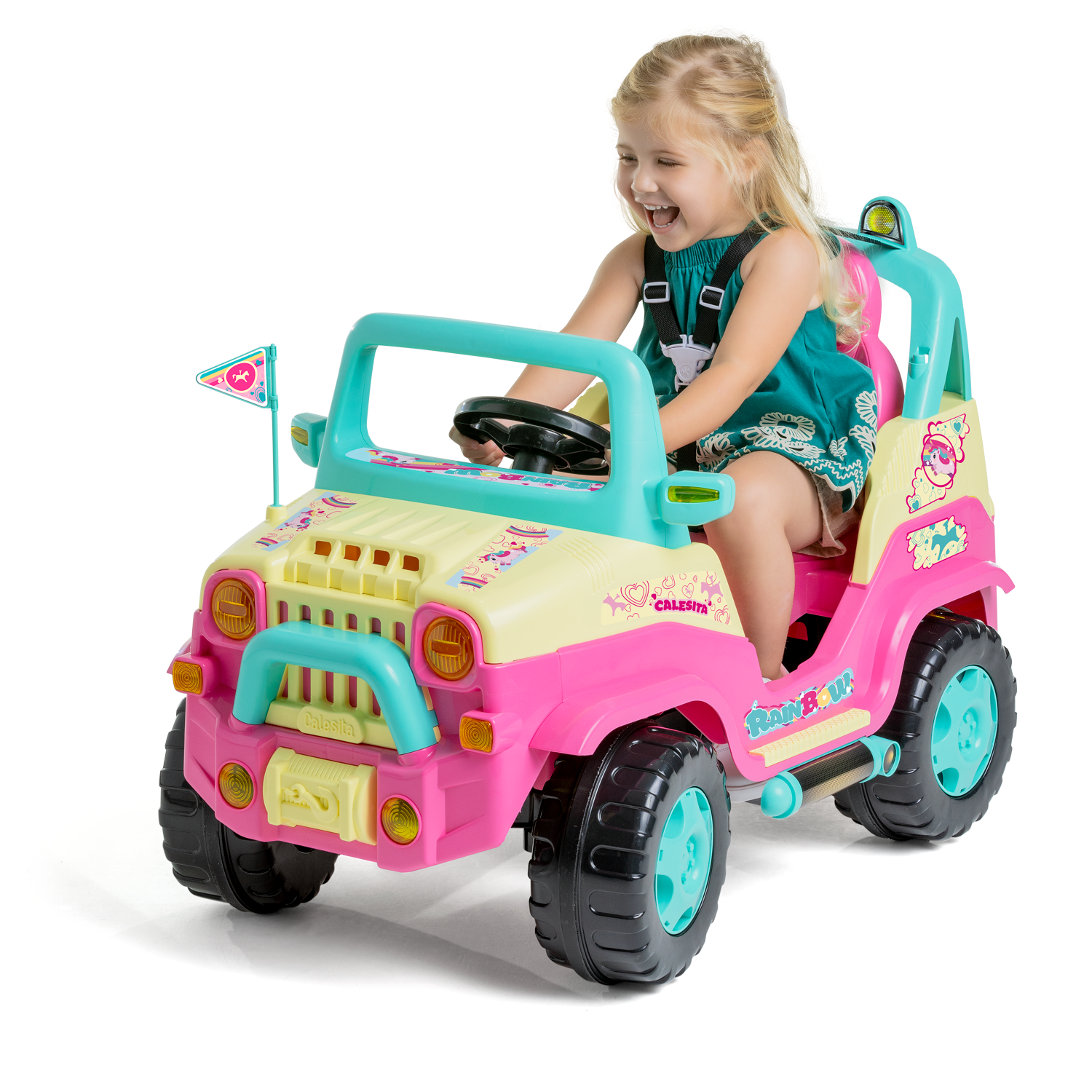 O Diipi Rainbow veio direto do mundo dos unicórnios, ele tem tudo o que os pequenos precisam para viajar pela imaginação: cores vibrantes, unicórnios fofíssimos e um volante e painel interativo que deixam a brincadeira ainda mais divertida. Os pais também entram na magia! Com a haste removível, eles podem conduzir os pequenos exploradores com conforto e segurança. E quando a criança quiser pilotar sozinha, é só remover a haste e deixar a aventura continuar!